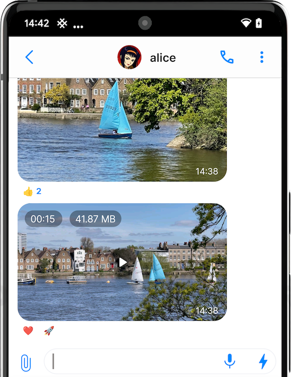 We didn't like the view of other messengers plagued by 40 different reactions on a message, and we were not quite sure what can be done about it, so we initially decided to limit available reactions to just 6: thumbs up 👍, down 👎, smile 😀, tear 😢, heart ❤️ and rocket 🚀. But unlike some other messengers, we don't limit the reactions to just one per message - you can put up to 3.