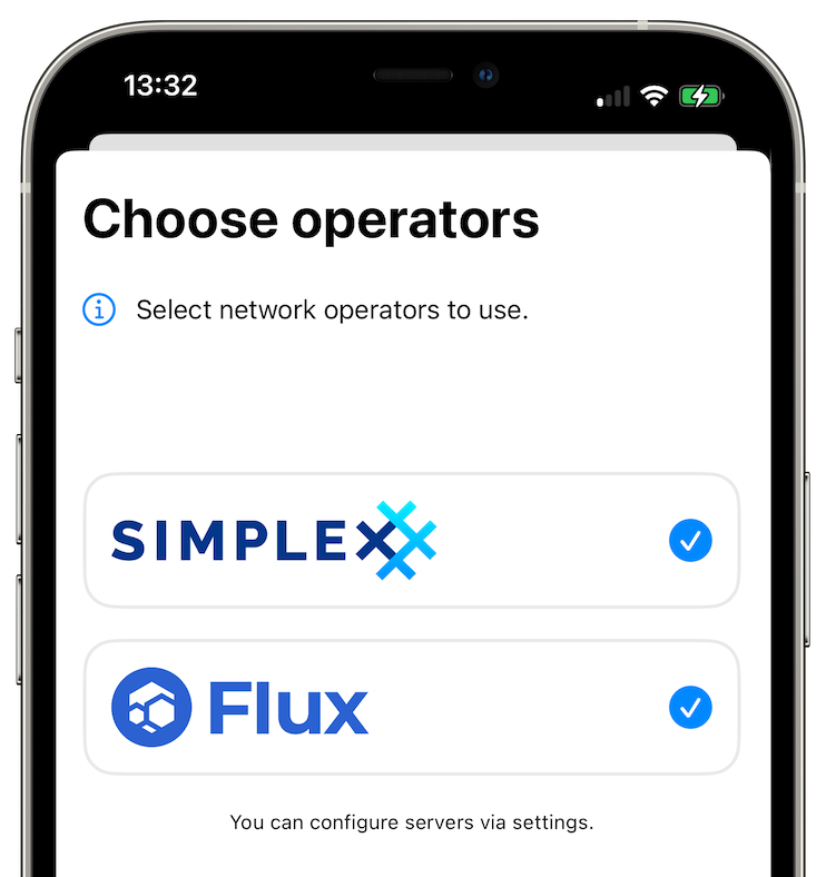 By default, if both Flux and SimpleX servers are enabled in this version, you will be using SimpleX Chat servers to receive messages, Flux servers to forward messages to SimpleX Chat servers, and the servers of both to forward messages to unknown servers. We will enable Flux to receive messages by default a bit later, or you can change it now via settings.